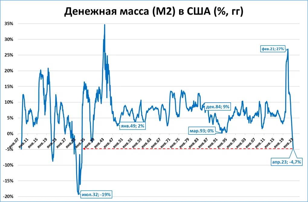 Напомним, что это самое большое падение денежной массы за год со времён Великой депрессии.