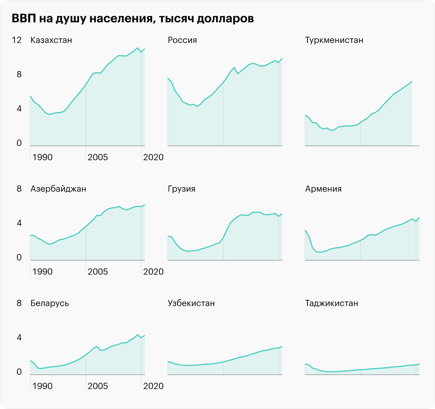 До 2022 года Казахстан был лидером среди стран СНГ по уровню ВВП на душу населения. По этому показателю он превосходил даже Россию. Но в прошлом году россияне технически казахов опередили — благодаря укреплению рубля. Один житель РФ в среднем принес экономике 15 тысяч долларов за год, а житель Казахстана увеличил ВВП страны на 11 тысяч.