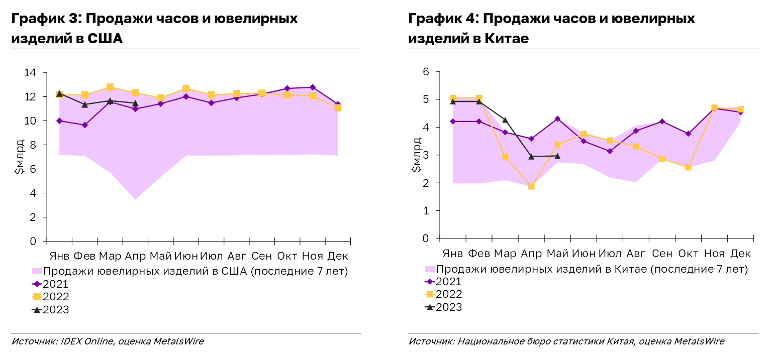 а прошлой неделе продажи De Beers - ближайшего конкурента "Алросы" - снизились на 32% г/г в ходе пятого цикла. Таким образом, продажи компании падают уже 6 месяцев подряд, сократившись на 23% г/г по итогам 1П2023 г. Напомним, что в этом году De Beers уже дважды снижала цены на алмазы из-за низкого спроса - в январе и июне. Кроме того, из-за низкой активности огранщиков компания перенесла свои аукционы (исторически ~10% всех её продаж) в 5-6 циклах. На наш взгляд, это негативный "кросс-рид" на акции российского алмазобытчика.