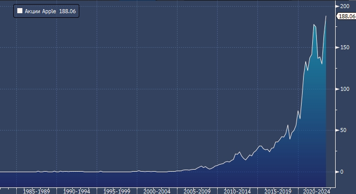 Акции Apple выросли на 1,5% и закрылись на уровне чуть более 188 долларов во вторник, увеличив свой рост за год и поставив технологического гиганта на грань оценки в 3 триллиона долларов.