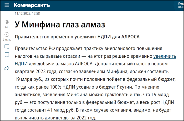 Правда, 30.05.23 Набсовет Алроса рекомендовал не выплачивать дивиденды за 2022 год.