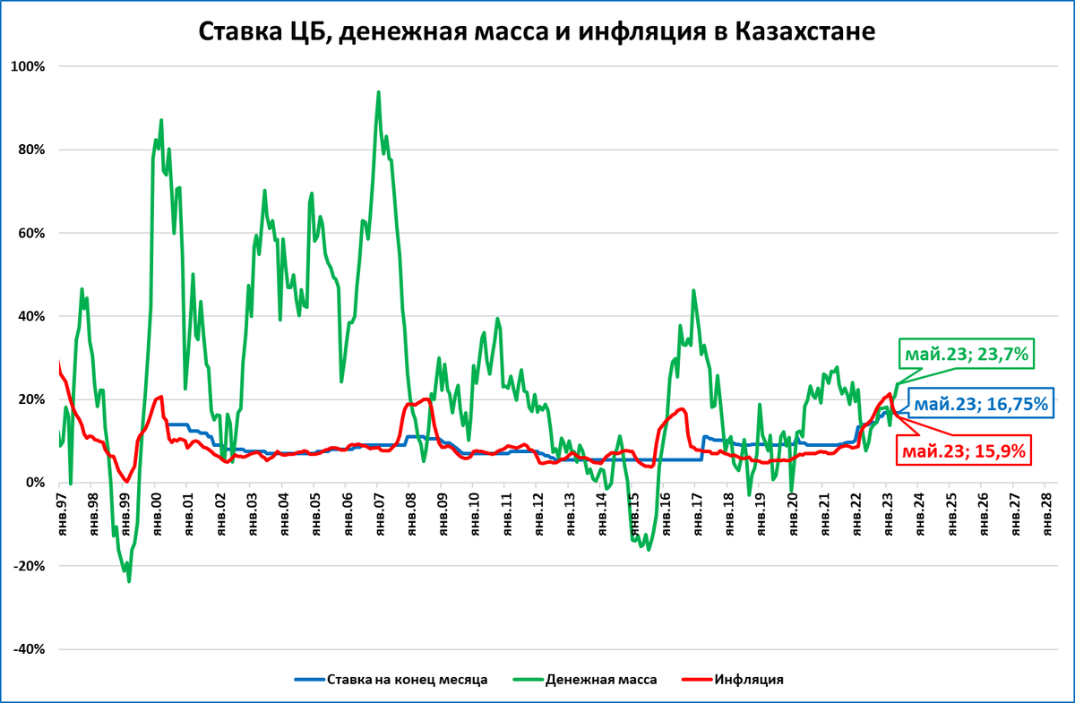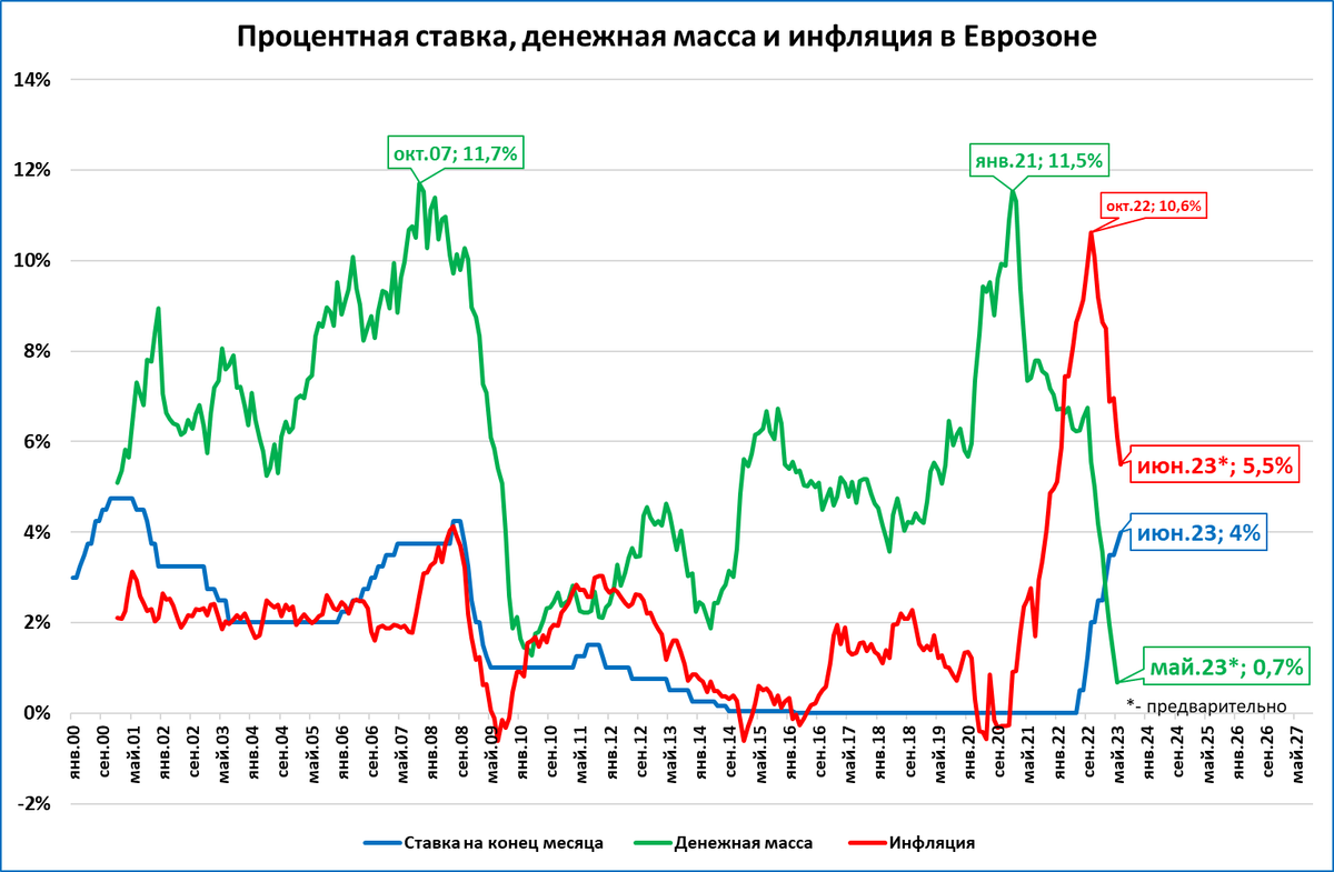 И даже некоторое снижение инфляции (она снизилась до 5,5% в июне после 6,1% в мае) не помогает: номинальная денежная масса растёт медленнее цен.