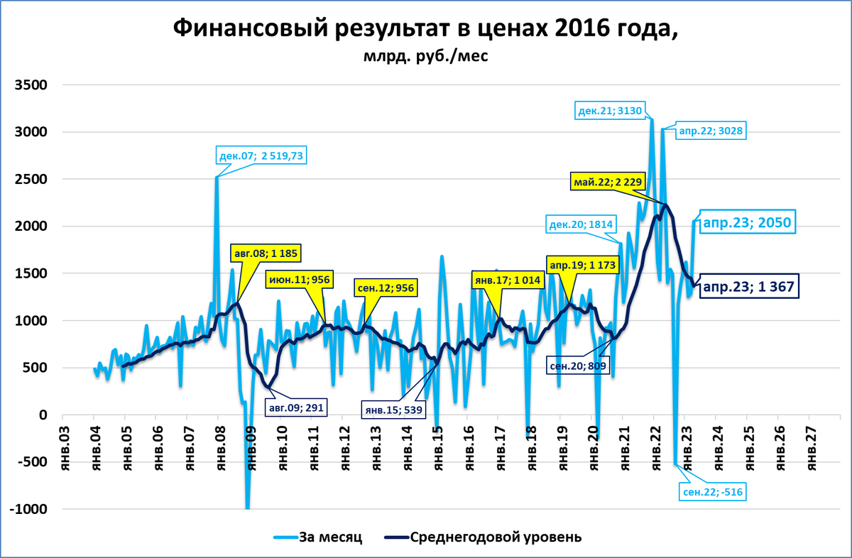 Прибыль выше 2 трлн (в ценах 2016 года) до 2021 года наблюдалась лишь один раз: в декабре 2007 года.