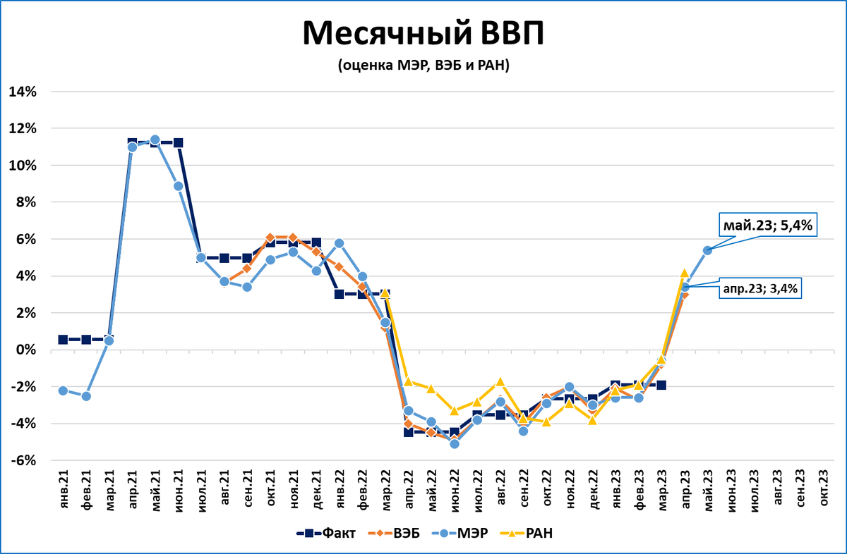 Так, даже оценку роста ВВП за апрель (+3,3%), данную всего месяц назад, он уже вынужден был пересмотреть на +3,4%.