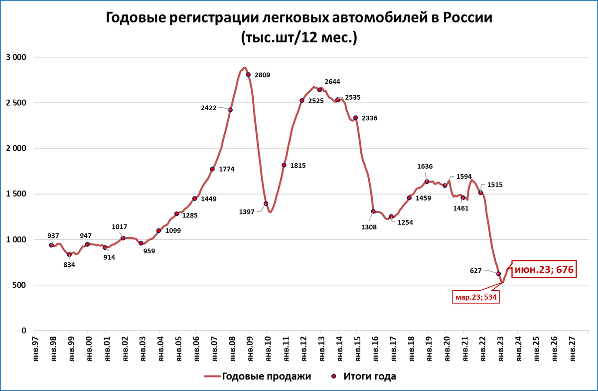 Данные по рынку легковых автомобилей за июнь подтверждают наш прогноз рынка в 1 млн. штук в 2023 году.