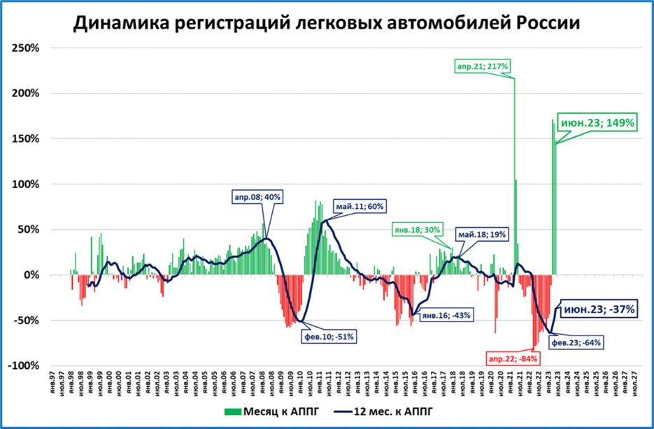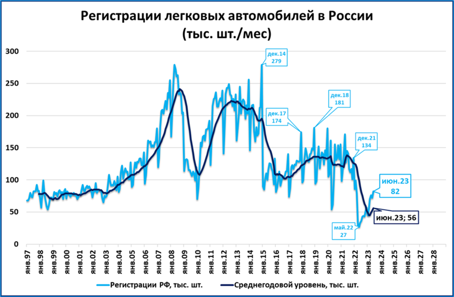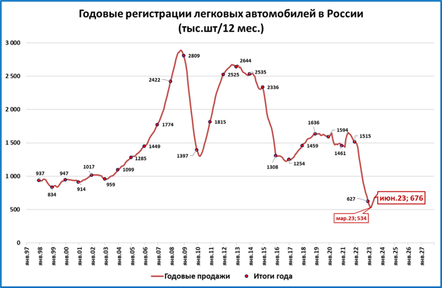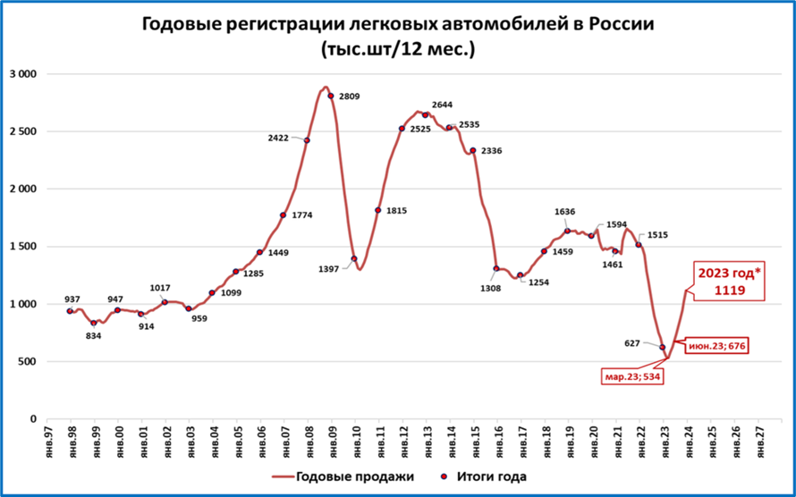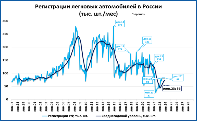 Данные по рынку легковых автомобилей за июнь подтверждают наш прогноз рынка в 1 млн. штук в 2023 году.