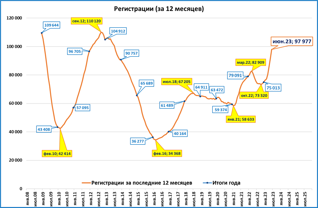 До этого рекордным был июнь 2008 года (9 284 шт.). Иначе говоря, июнь 2023 года стал лучшим июнем в истории.
