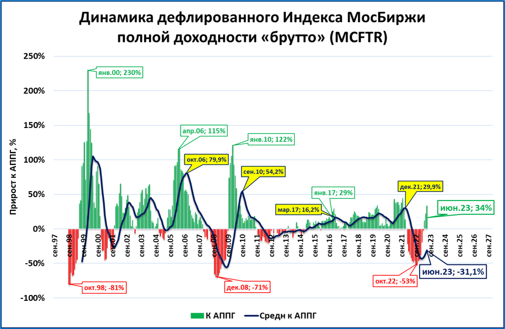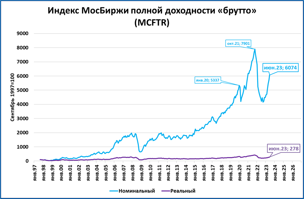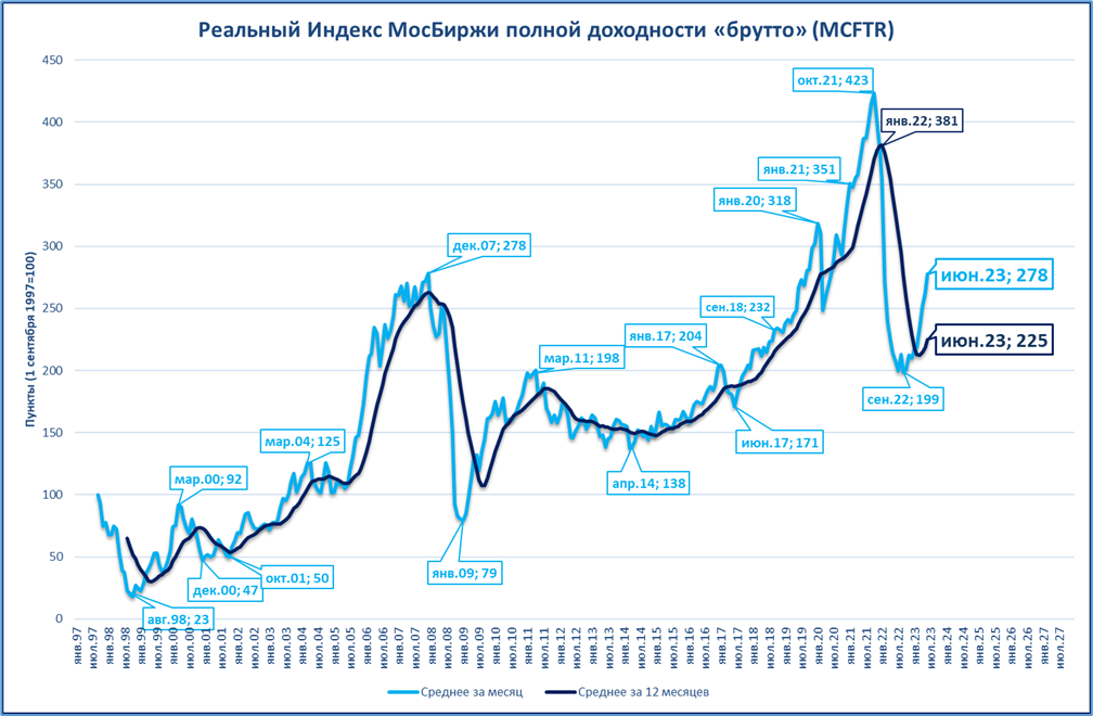 Низшей точкой реального индекса полной доходности был сентябрь 2022 года.