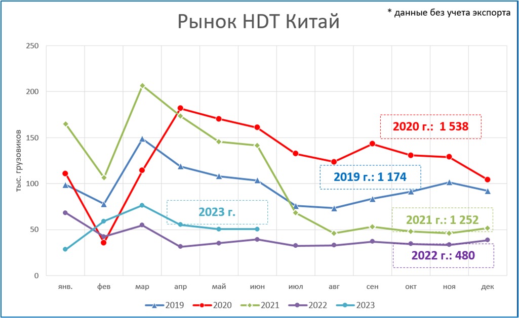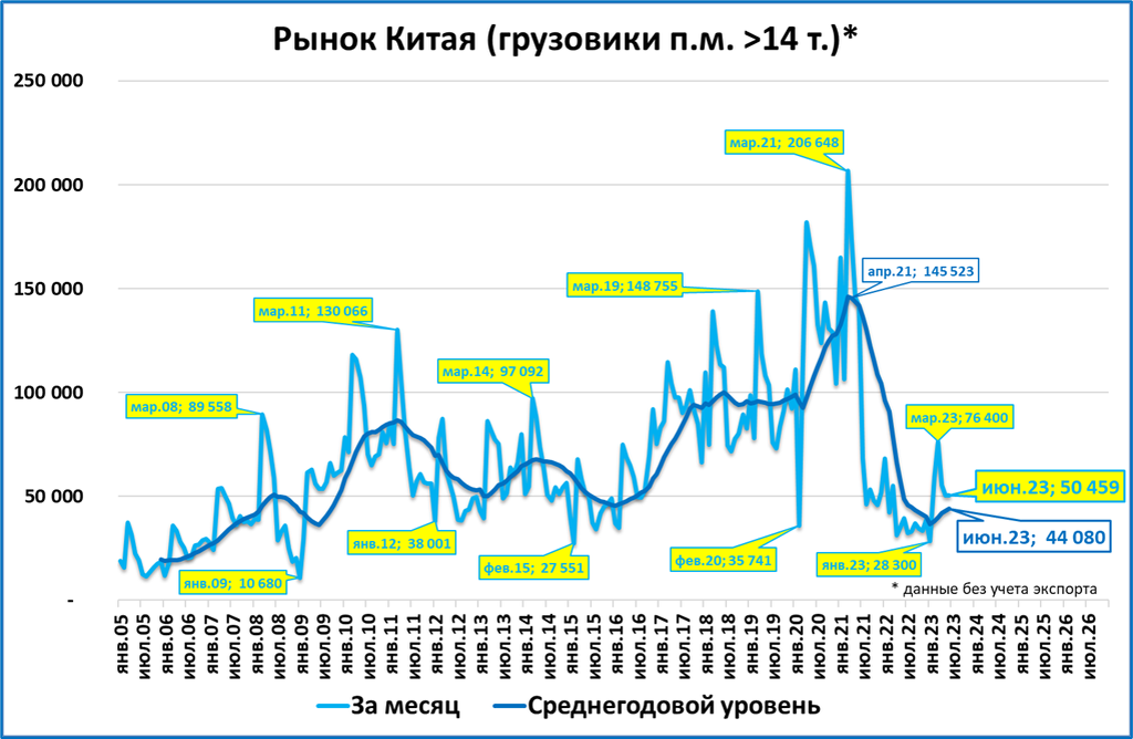В июне по нашей предварительной оценке в Китае было продано 50,5 тыс. тяжёлых грузовиков.