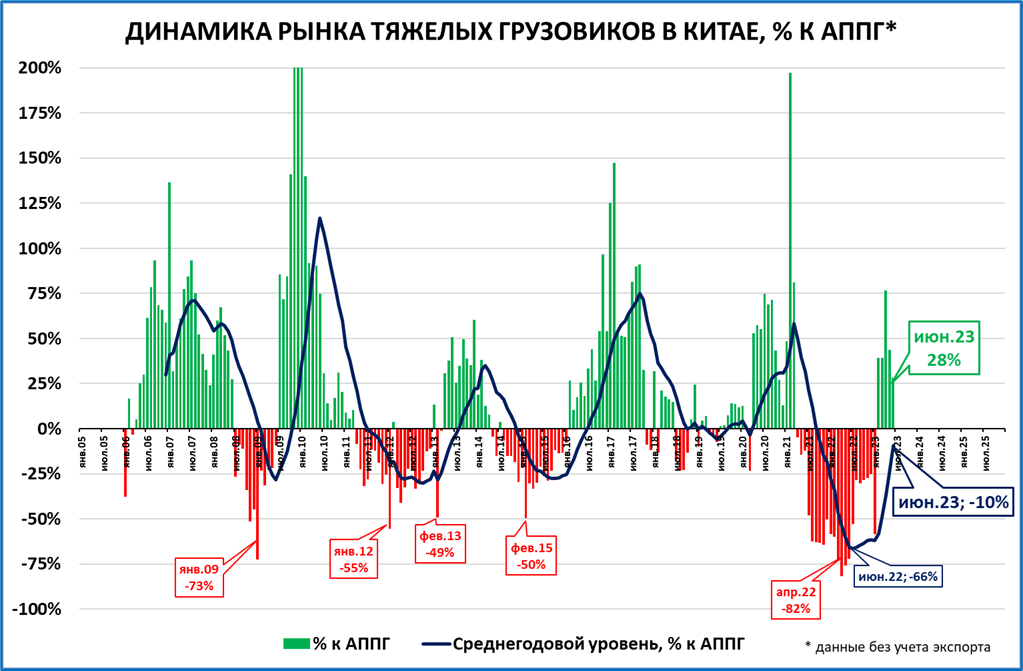 ● Рынок тяжёлых грузовиков в Китае вырос в июне на 28% годовых.