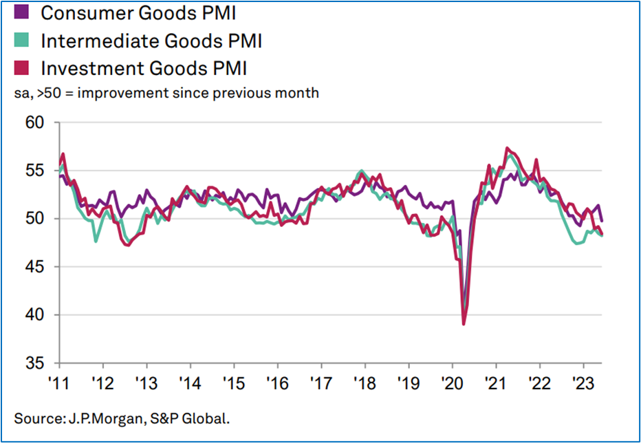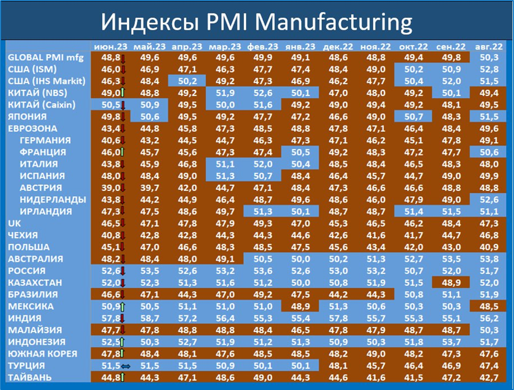 Индексы деловой активности в большинстве стран не только ниже 50 пунктов (что говорит о снижении деловой активности), но и продолжают падать.
