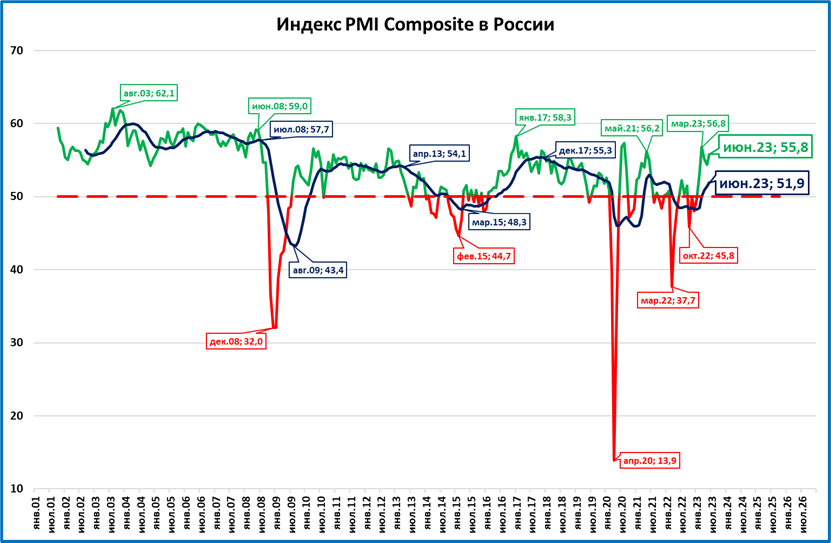 Напомним, что в 2021 году рост ВВП составил 5,6%. В 2023 году рост ВВП может быть выше, динамика индекса деловой активности косвенно это подтверждает.
