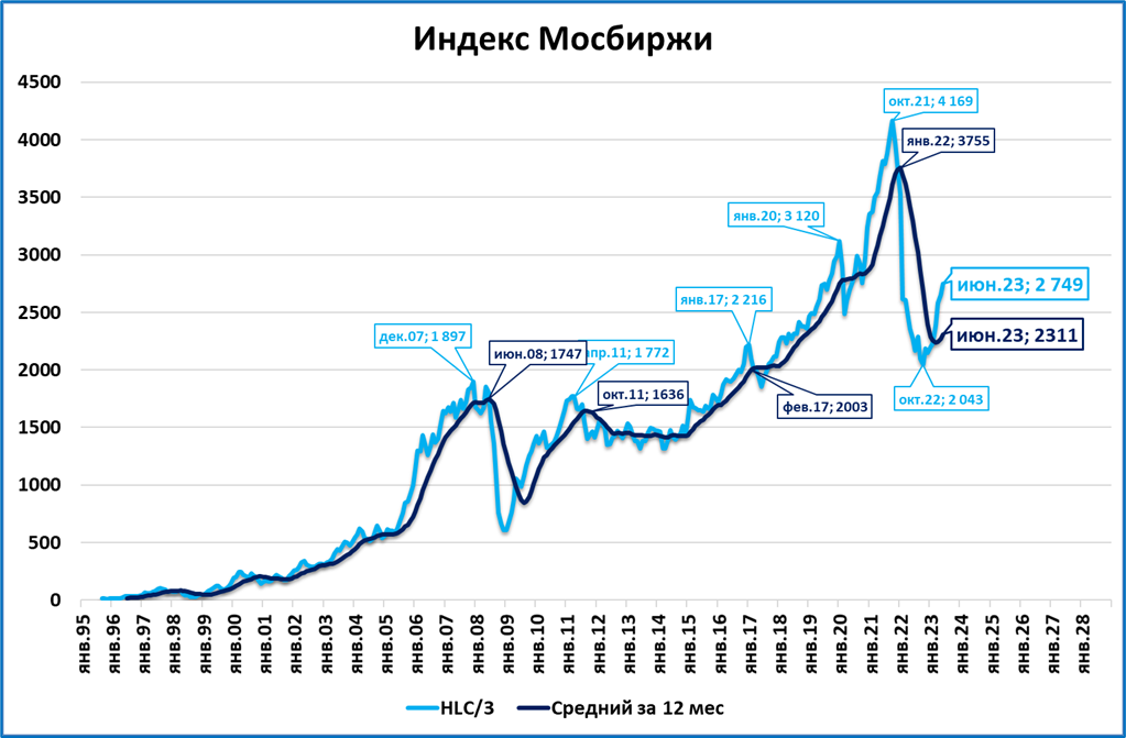 В июне среднегодовое значение индекса Мосбиржи составило 2 749 пунктов.