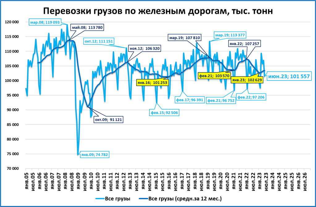 В июне, по нашей предварительной оценке, перевозки грузов железнодорожным транспортом составили 101,6 млн. тонн.