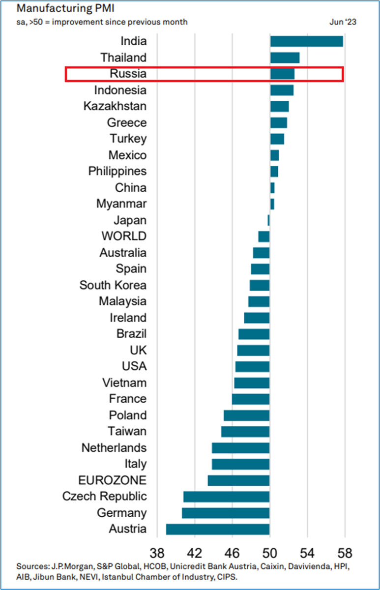 Следует отметить, что среди крупных экономик мира рост деловой активности сохраняется в Китае, Индии, России, Индонезии, Турции, Мексике.