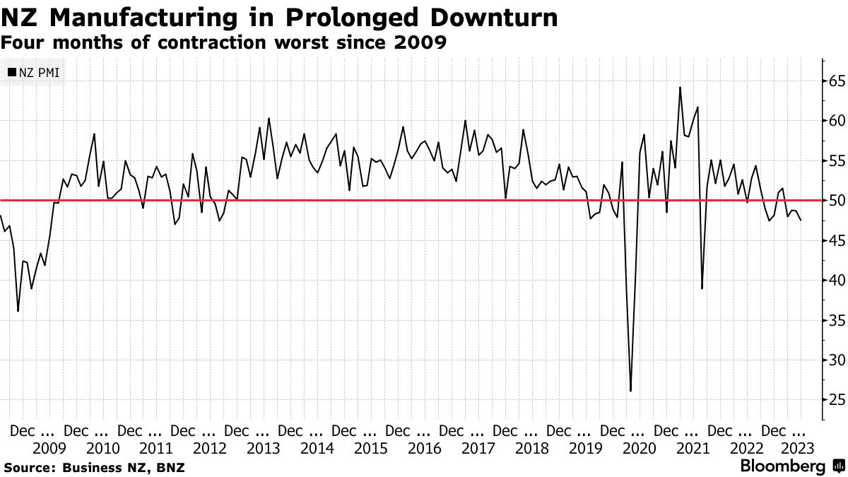 Обрабатывающая промышленность Новой Зеландии сокращается четвертый месяц подряд, что является самым продолжительным спадом с 2009 года.