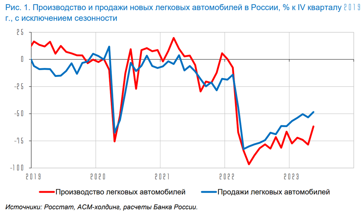 Сегмент легковых автомобилей пострадал наиболее сильно. Продажи новых легковых автомобилей по итогам 2022 г. упали на 58% г/г. Производство в 2022 г. снизилось (-67% г/г), что во многом связано с сокращением объемов контрактной сборки из-за ухода иностранных автоконцернов (в 2021 г. доля отечественного производства иномарок составляла около 70% совокупного выпуска легковых автомобилей в России).