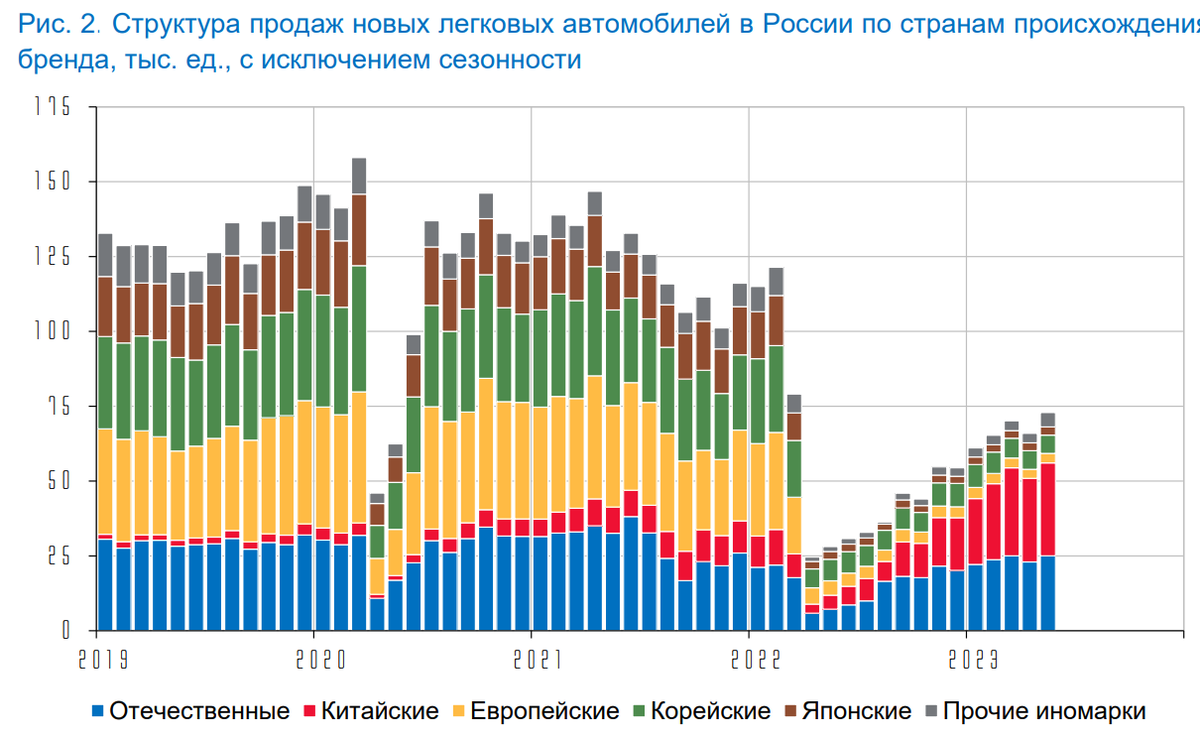 Инфографика говорит нам о том, что восстановление идет. Заметно растет импорт новых легковых автомобилей, свыше 70% поставок приходится на Китай. Канал параллельного импорта оказывает не сильное, хотя и растущее влияние. Пока 10% продаж.