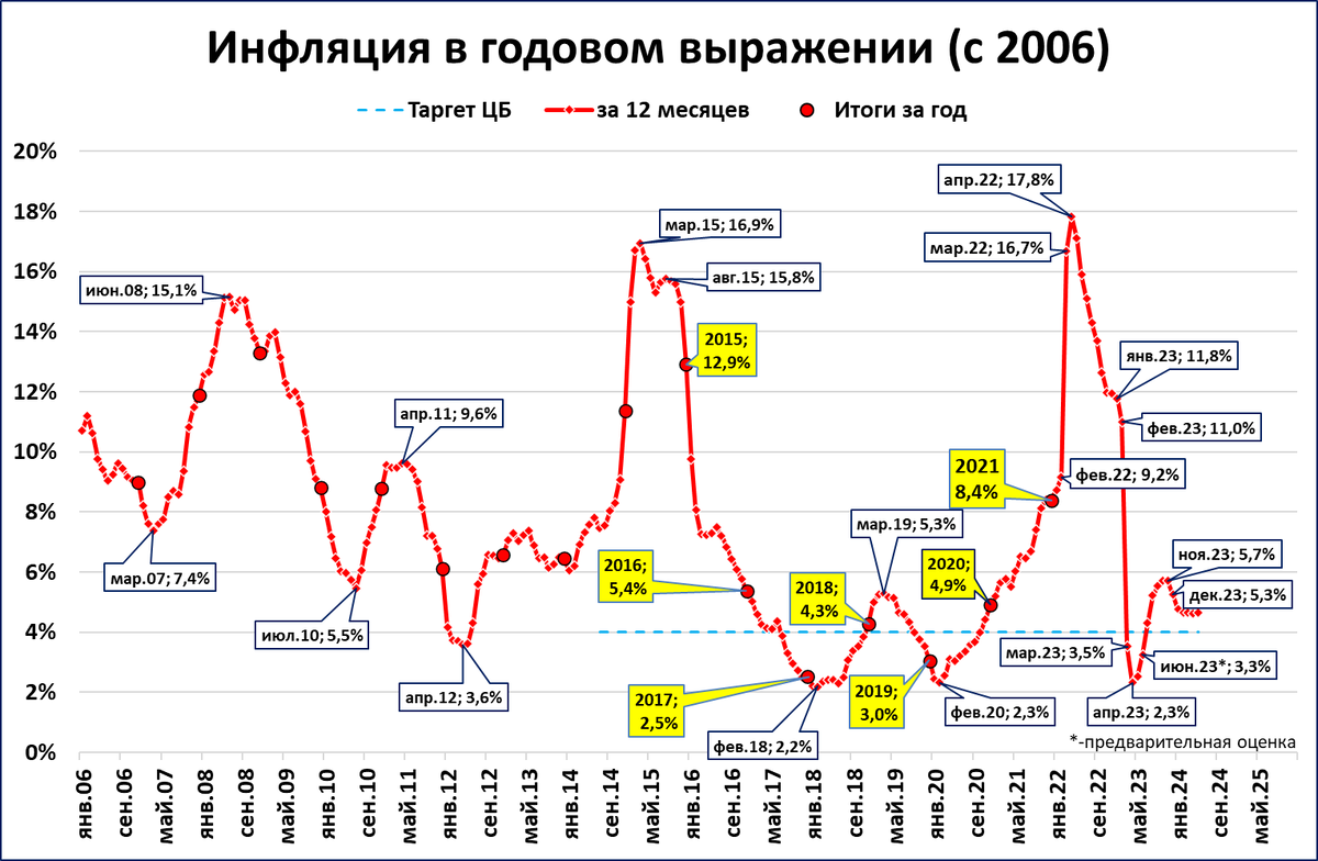 Это выше целевого уровня (таргета) ЦБ в 4%.