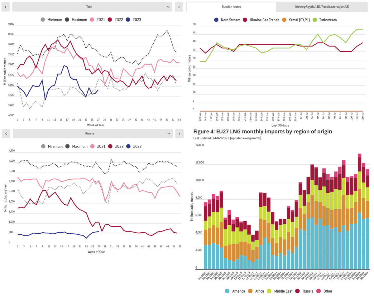 Синк танк (в миру - аналитический центр) Bruegel обновил данные по импорту газа в Европу. Импорт газа в Европу начал тихонько расти. Но не сильно. До сих пор находится на минимальных показателях для текущего временного отрезка за последние 8 лет.