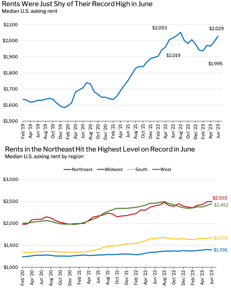 Медианная запрашиваемая стоимость аренды в США сейчас составляет 2 029$. Рекорд был поставлен в августе прошлого года - 2 053$. Осталось немного. Можем повторить? Им надо сделать наклейки на машины - этот график и надпись «Можем повторить?».