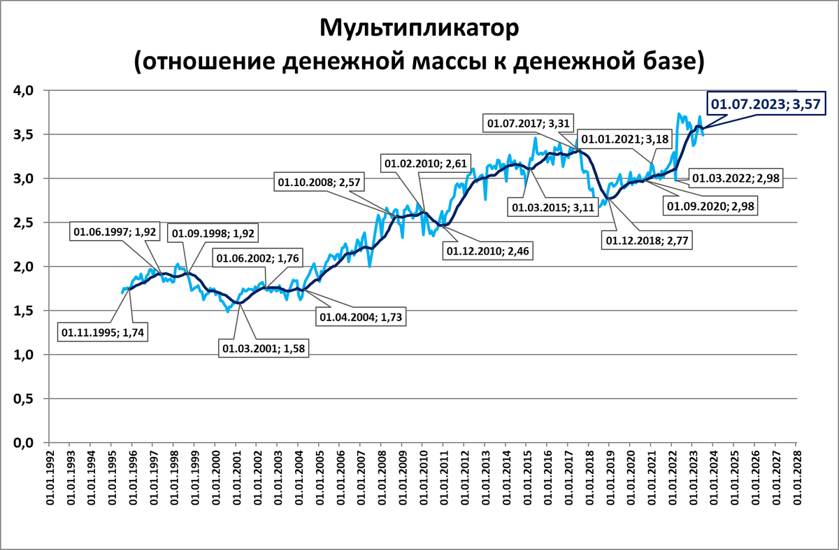 Денежный мультипликатор (ДМ/ДБ) 3,49.