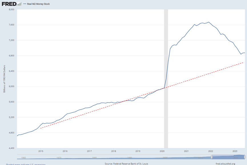 Пожалуй, предыдущий небывалый рост -- единственное разумное объяснение, почему нынешнее сокращение денежной массы (и номинальное, и реальное сокращение) до сих пор не сказывается негативно на американской экономике.