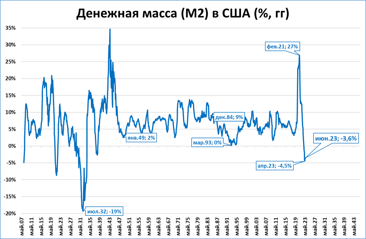 Да, падение денежной массы в годовом выражении сейчас наблюдается самое большое со времён Великой депрессии 1930-х годов.