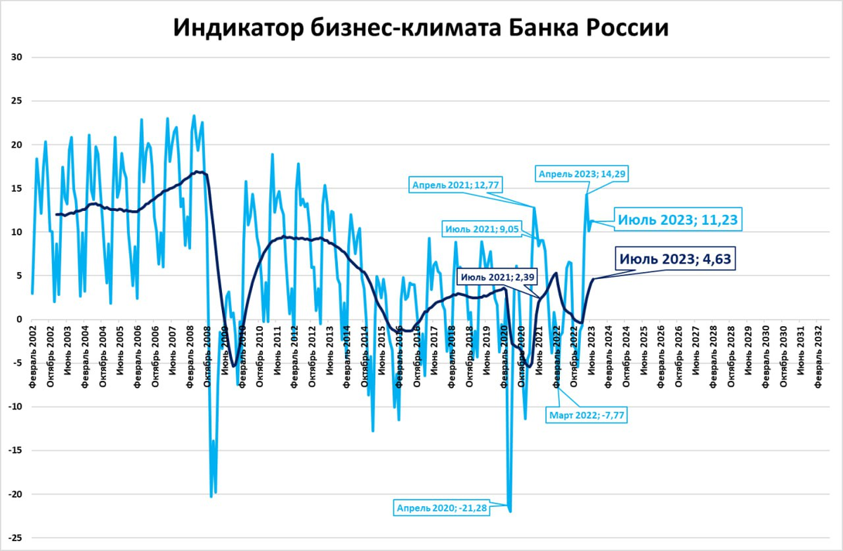 В июле 2021 года он поднялся всего до 2,4 пункта. В нынешнем же июле он поднялся уже до 4,63. В 2021 году индикатор достиг такого уровня только в декабре (4,61).