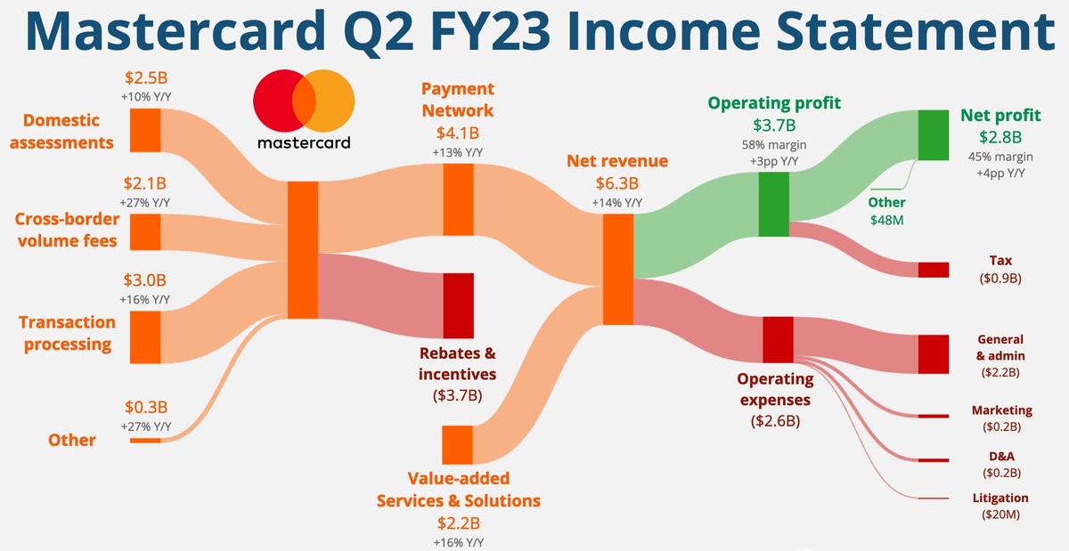 Кстати, чистая прибыль практически в 2 раза ниже главного и единственного (привет свободной конкуренции) конкурента - Визы.