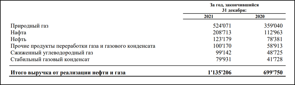 46% выручки приходилось на реализацию газа, а 54% принесли продажи жидких углеводородов.