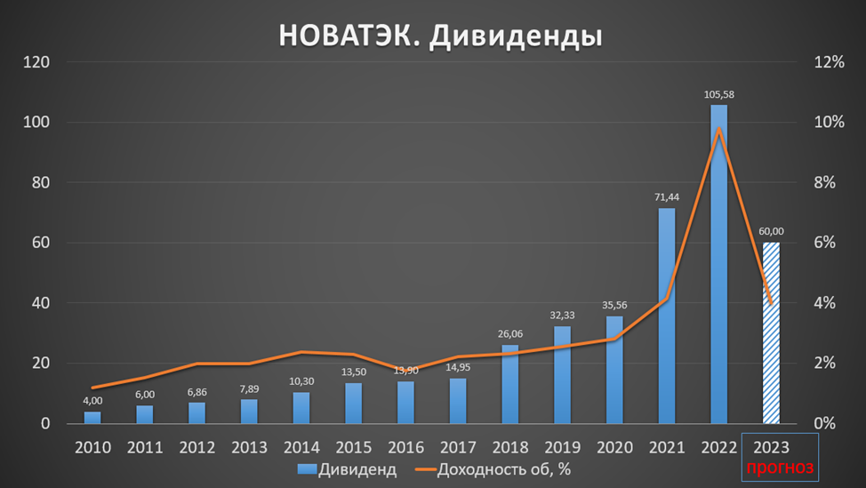 Кстати, из-за аномально высоких цен на газ, компания хорошо себя чувствовала в прошлом году. Новатэк не раскрыл конкретных данных, но результаты за 2022 год должны быть рекордными. В частности, глава компании, Михельсон отмечал, что чистая прибыль выросла более, чем на 50%.