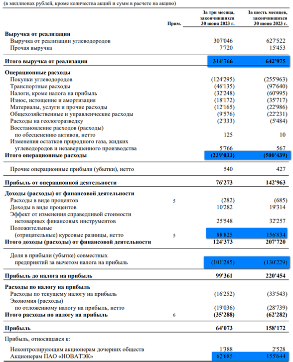 Новатэк опубликовал сокращенную отчетность по МСФО за Q2 и 1П 2023 года. Это уже позитив, т.к. до этого последний отчет выходил почти полтора года назад и был посвящен итогам 2021 года.