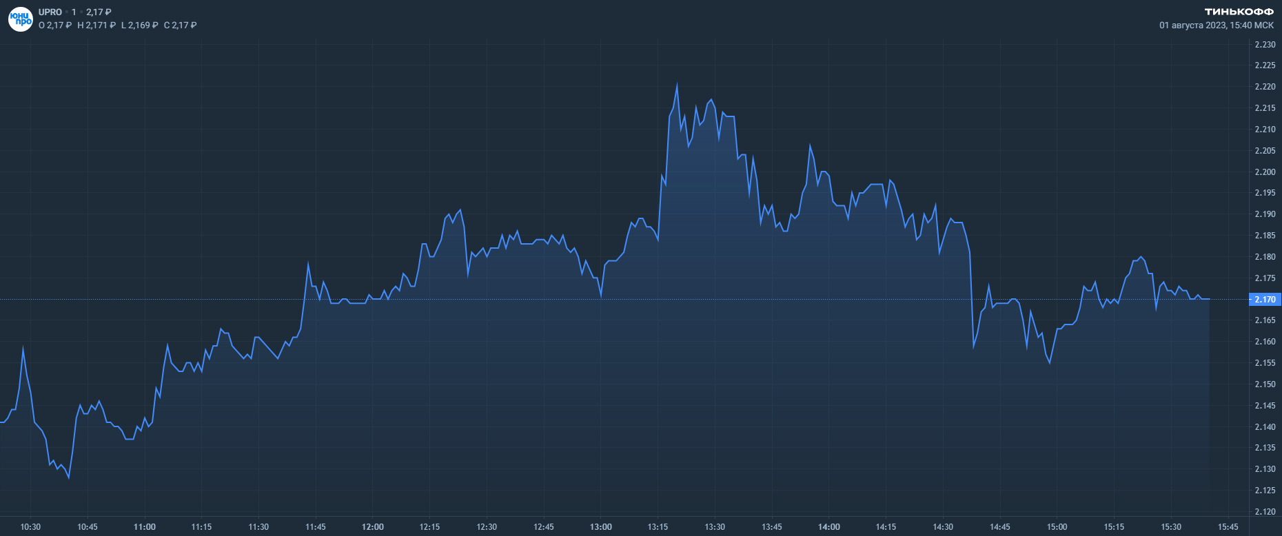 К 15:40 по мск UPRO торгуется по 2,17 руб за акцию (+1,26% к цене закрытия предыдущего торгового дня).