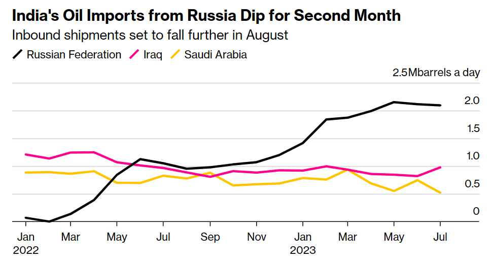 Короче, суточные объемы упали до 2,09 млн барр. в июле по сравнению с 2,11 в июне. Ну просто рухнули, что сказать. Входящие поставки из Саудовской Аравии также сократились, в то время как импорт из Ирака вырос до пятимесячного максимума.