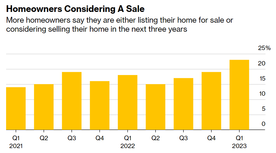 Несмотря на это, почти четверть домовладельцев рассматривают возможность продажи своего дома в ближайшие три года или в настоящее время выставляют его на продажу — значительно больше, чем 15% домовладельцев, которые говорили то же самое год назад.