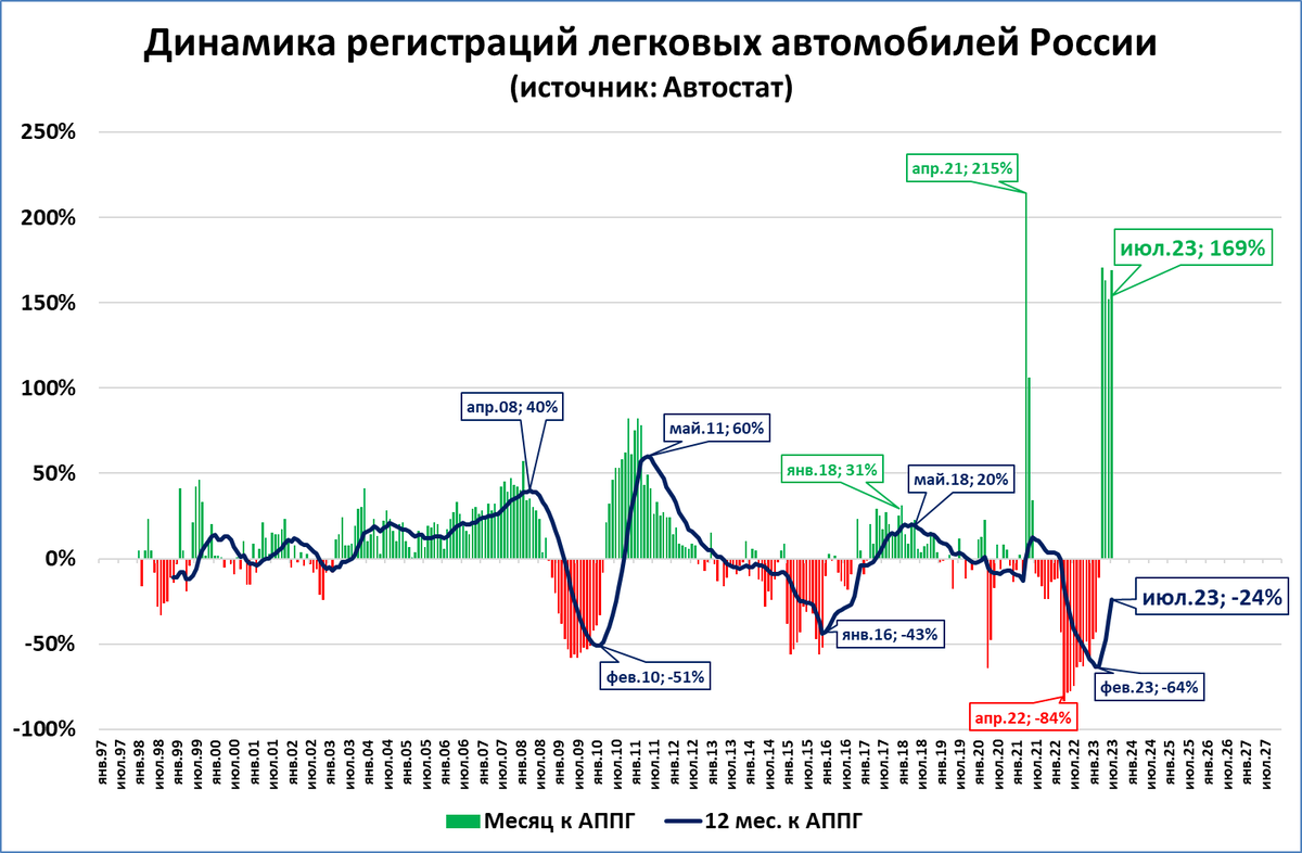 За последние 12 месяцев (скользящий год) регистрации составили 736 тыс.