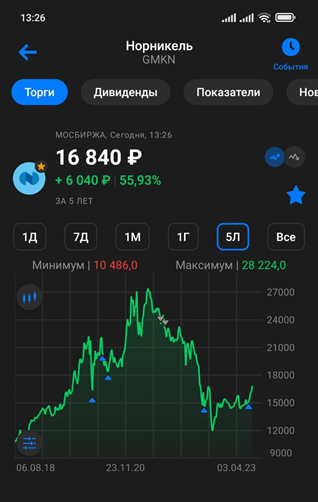 В начале июня 2023 на годовом собрании акционеры приняли решение не выплачивать дивиденды за 2022 год. Таким образом, прервалась многолетняя дивидендная история Норникеля.
