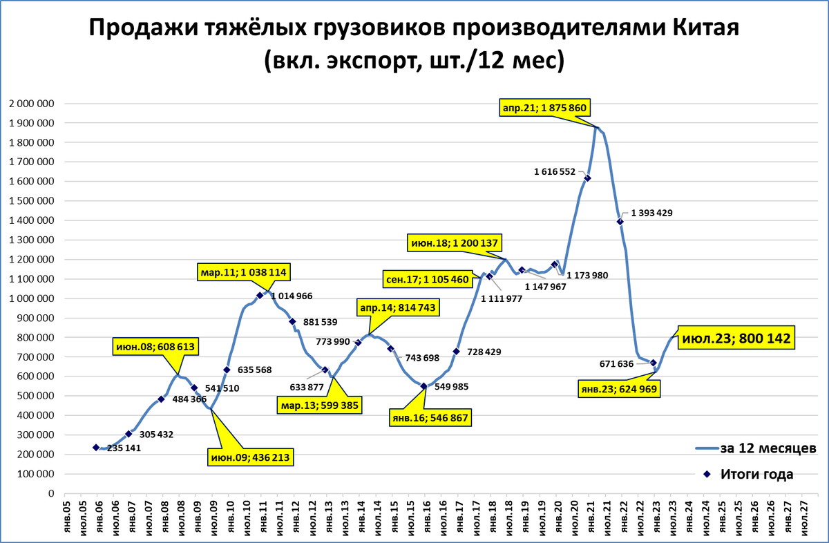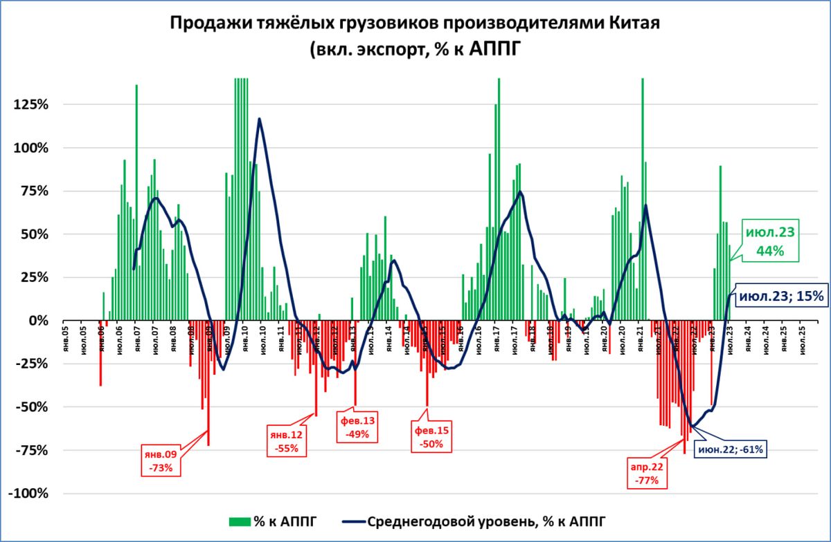 ● Продажи грузовиков китайскими производителями (в Китае и на экспорт) выросли в июле на 44%.