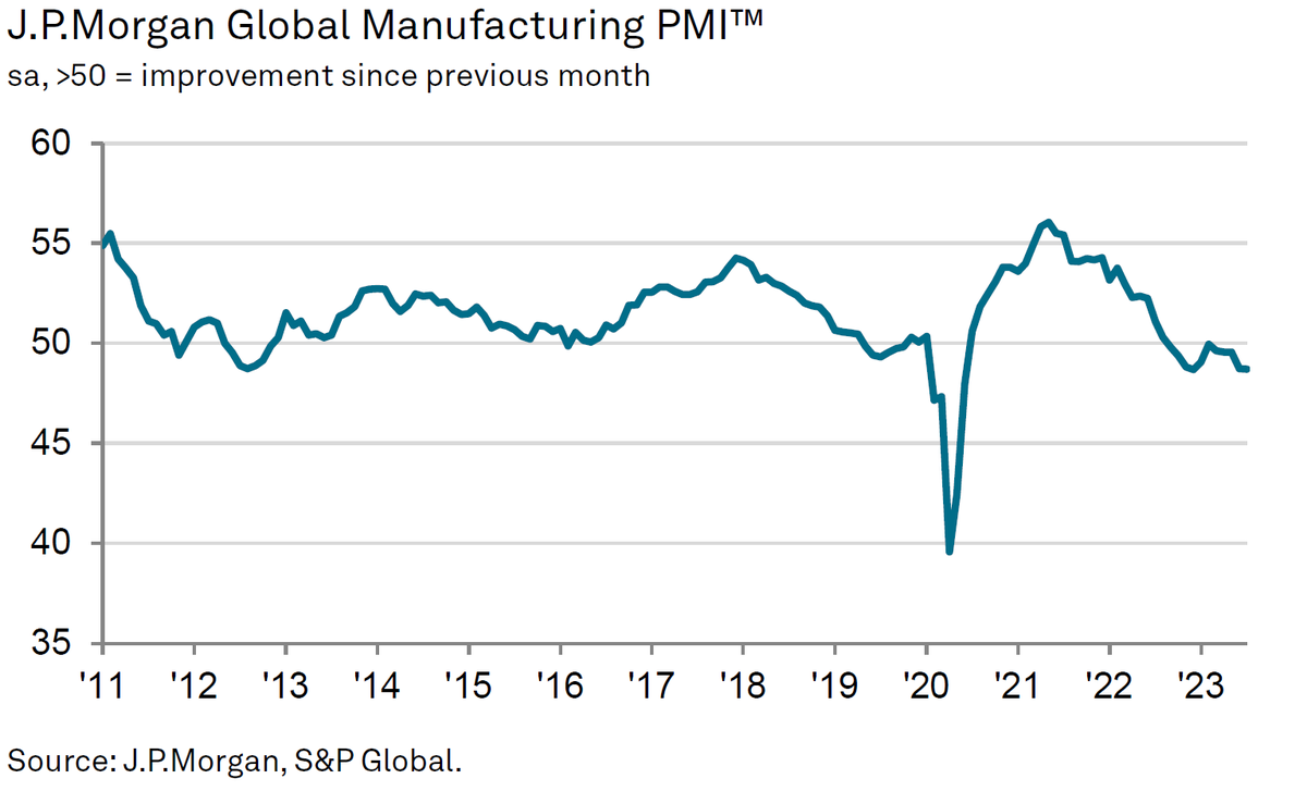 Индекс деловой активности в мировой обрабатывающей промышленности (Global PMI Manufacturing) указывает на падение деловой активности одиннадцатый месяц подряд, сообщает S&P Global.