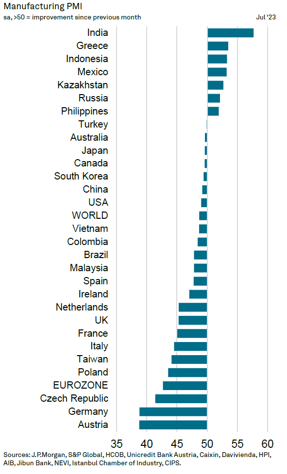 Крупные страны, где деловая активность растёт, можно пересчитать по пальцам: их всего семь, шесть из которых -- развивающиеся рынки.