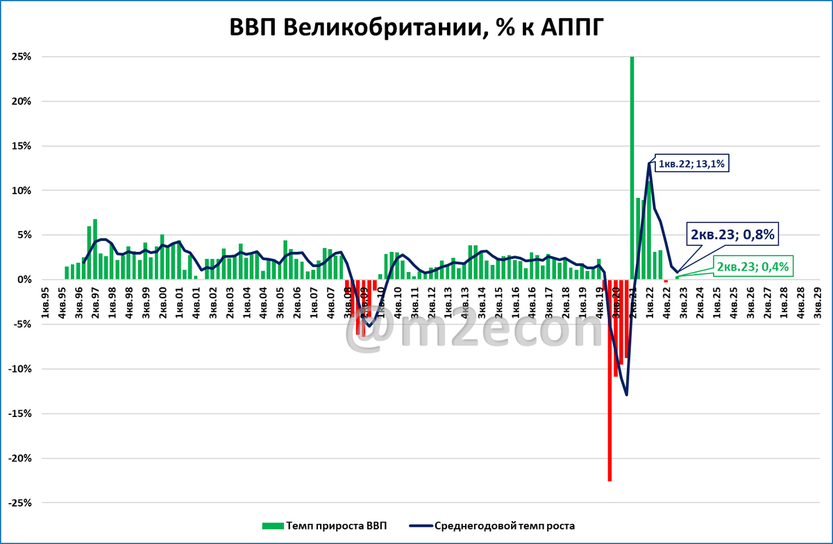 О том, что дела в британской экономике плохи, говорит и тот факт, что она до сих пор не смогла подняться к доковидным максимумам 2019 года.