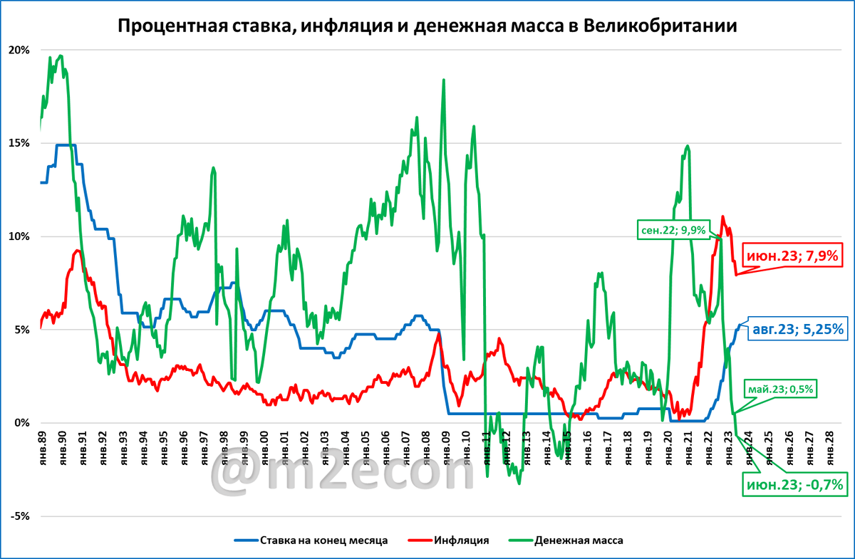 Плохие результаты британской экономики объясняются сокращением реальной денежной массы (РДМ).