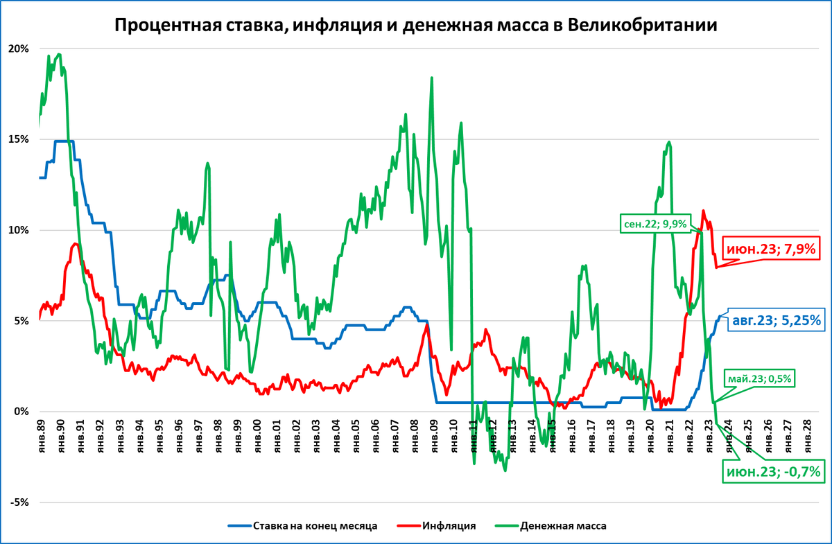 Плохие результаты британской экономики объясняются сокращением реальной денежной массы (РДМ).