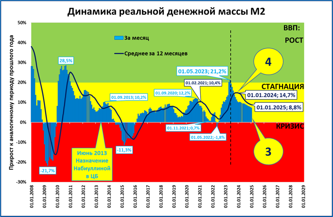 Зная динамику номинальной денежной массы и инфляции, легко посчитать, как вырастет денежная масса в реальном выражении (реальная денежная масса, РДМ).