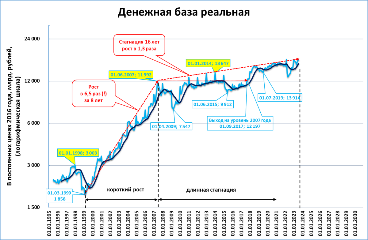 Весь этот рост вписывается в многолетнюю (с 2007 года) стагнацию реальной денежной базы.