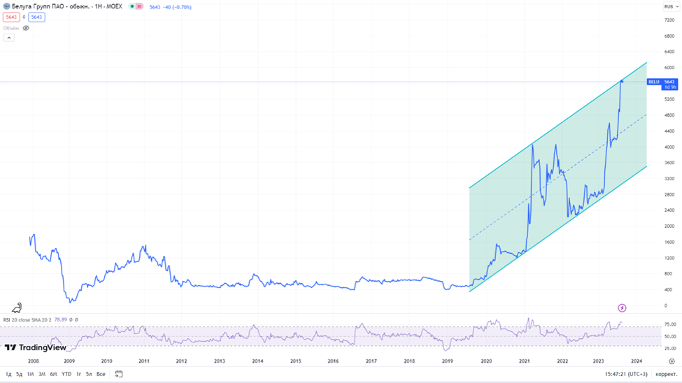Не так давно я продал акции Белуги и зафиксировал около 60% прибыли. Напомню, что о всех своих сделках пишу в нашем телеграм канале. После моей продажи акции сначала скорректировались на 10%, но потом выросли вместе с рынком на девальвации рубля. Сейчас после действий ЦБ, рынок потихоньку корректируются. Если акции упадут в район 4500-4000 ₽, то возможно, снова буду набирать позицию.