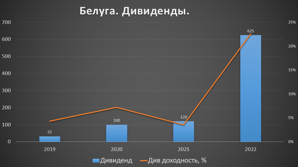За 2022 год компания выплатила очень большие дивиденды. И похоже в текущем году Белуга стремится сохранить уровень выплат, даже несмотря на рост чистого долга.