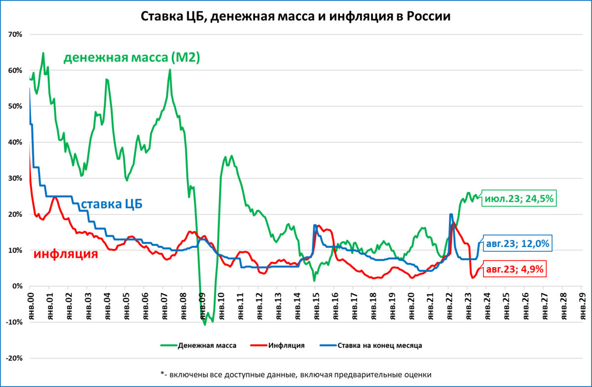 Все взлёты и падения экономики России очень хорошо объясняются динамикой реальной денежной массы.