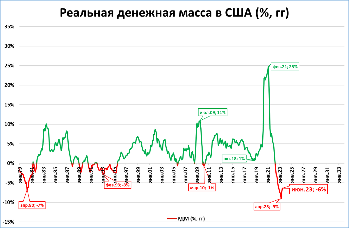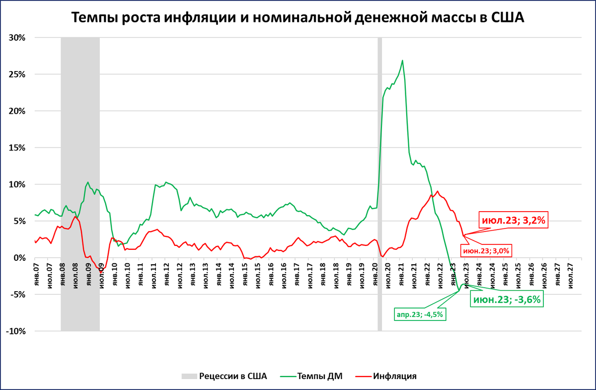 Напомним, что в июне денежная масса в США сжалась на 3,6% по сравнению с июнем 2022 года.